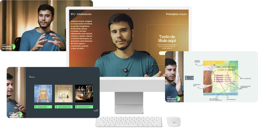 Todas as nossas aulas são gravadas em alta qualidade, com áudio cuidadosamente tratado para garantir uma experiência imersiva. Além disso, utilizamos slides e imagens didáticas que tornam o aprendizado mais claro e facilitam a compreensão dos conteúdos aprofundados. Cada detalhe é pensado para oferecer uma jornada de ensino envolvente e profissional.